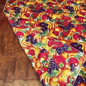 This is a beautiful finished edge Summer Fruit Cotton Table Cloth 43” x 39”. Excellent condition. No spots. No tears. No odors.