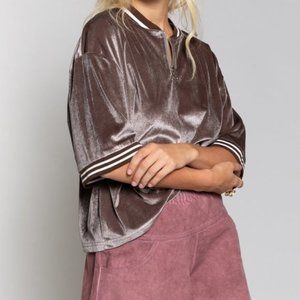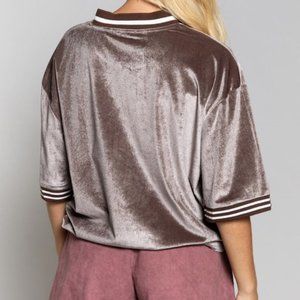 🍑Summer Furry Velveteen Boxy Oversize Polo Shirt NWOT Size Medium C167