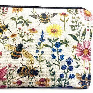 Summer Garden Bee Bees Flowers Wildflowers Zippered Pouch Cosmetic Travel Bag