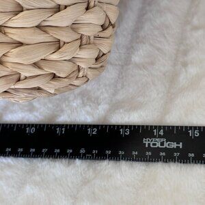 This fun summer handbag is made of durable straw, has a gold sparkly juicy couture charm that comes with the bag. Note, the bag is not Juicy Couture.