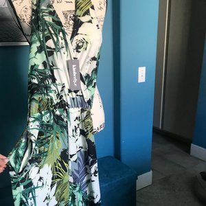 Brand new. Side pockets. Tie neck--adjustable. Perfect for a summer, beach, pool party.