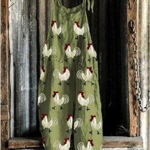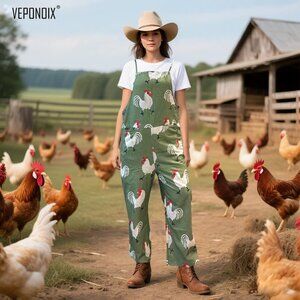 Summer Jumpsuits for Women 2025 Chicken Print Casual Sleeveless Comfy Loose Bib