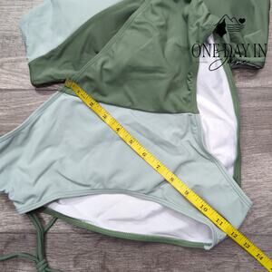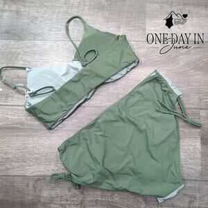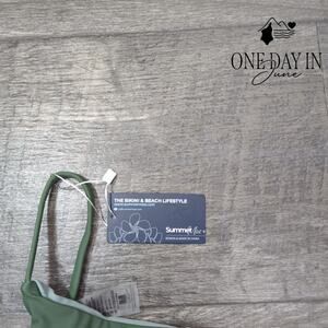 This emerald-hued two-piece captures the essence of poolside glamour with its striking colorblock design that commands attention at every sun-drenched gathering. Crafted from a luxurious blend of nylon and spandex, the bikini embraces your form with the fluid grace of summer itself. Brand new and awaiting its debut, this Summer Mae creation promises to transform ordinary beach days into memorable scenes of seaside sophistication.