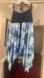 Summer Mae Tankini swim dress with a sexy v-neck design; bow knot halter style with adjustable strap; open back; easy flowing style; nylon/spandex; color: navy blue/floral print; size: Large. This is the top only. Perfect for the pool or beach.