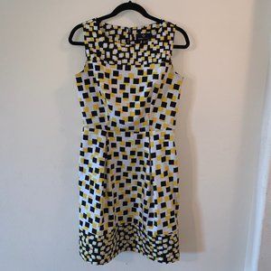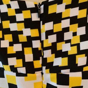 This Is A White Dress With Yellow And Black Squares On It, From The Brand Ronni Nicole. Size 8. Used. Excellent Condition.