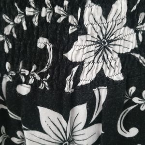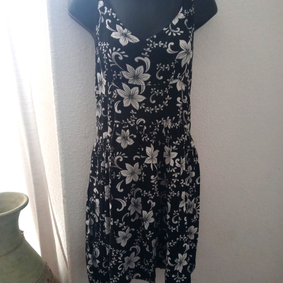 Lightweight summer dress with straps. Back is low with gathered elastic at the top for a nice fit. Ebony with white florals.