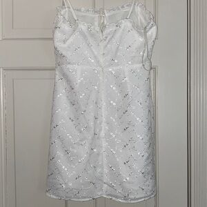 Adjustable spaghetti straps , zipper in the back, has a slip for no show undergarment This beautiful mini dress is hot. White iliv And super sexy. Smoke free home. New with tags