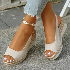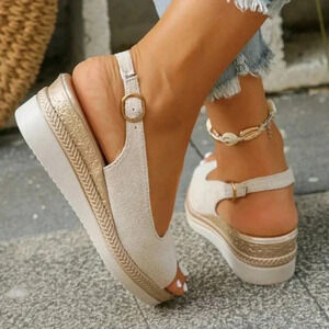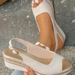 Summer New Fashion Casual Beige Middle-Aged Women's Peep Toe Wedge Sandals