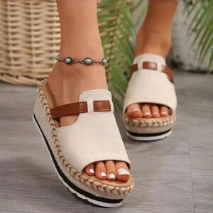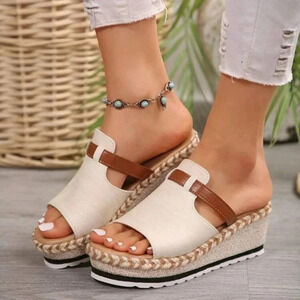 Summer New One-Piece Open-Toe Fashionable Women Wedge Heel Thick-Soled Slippers