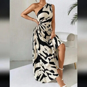 Summer Off-Shoulder Hollow-Out Printed Dress