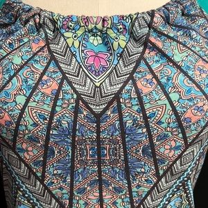 Stylish Prana dress with intricate patterns. Features a mix of vibrant colors. Perfect for casual outings.