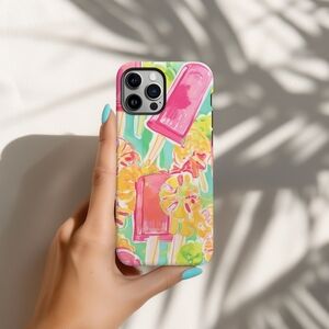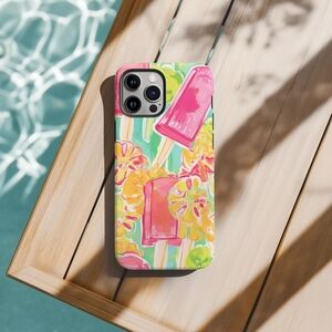 Enhance your phone with this stylish bright neon summer vibes preppy Lily Pulitzer inspired vivid tropical floral popsicle design IPhone 16, 15, 14, 13, 12, 11, 8, X, XR, XS, XS Max (Pro Max, Pro, Plus, Mini) case. Perfect for adding a touch of elegance to your device.