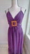 Beautiful purple color perfect for summer and spring , lightweight flow dress, has a mini lining inside, wood color buckle accent in front, open back, adjustable straps, elastic waist, and slightly open from the front sides.