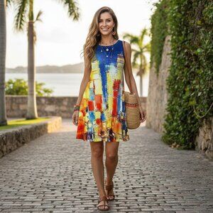 Step into effortless luxury with this colorful abstract print sleeveless dress, designed for your dream vacations, resort getaways, and sun-filled adventures! βοΈ Crafted from incredibly soft, breathable, and highly stretchy fabric, this dress offers a flattering, lightweight feel youβll love. Whether youβre exploring a coastal town, enjoying a sunset dinner, or lounging at an upscale resort, this vibrant dress brings chic elegance and unmatched comfort to every moment. π΄β¨