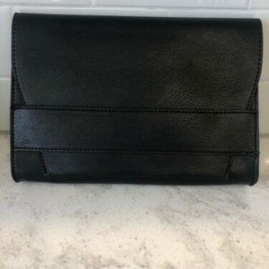 Black purse can be used as a clutch or evening bag. Detachable strap.