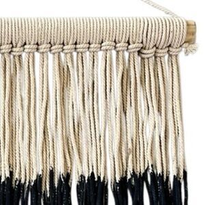 Add an earthy boho vibe to your space with this Summer & Rose Ombre Wall Hanging. Crafted from 100% cotton with a wooden rod, it features a blue ombre fringe design for a modern, relaxed look. Perfect for living rooms, bedrooms, dorms, or anywhere you want an artistic touch.