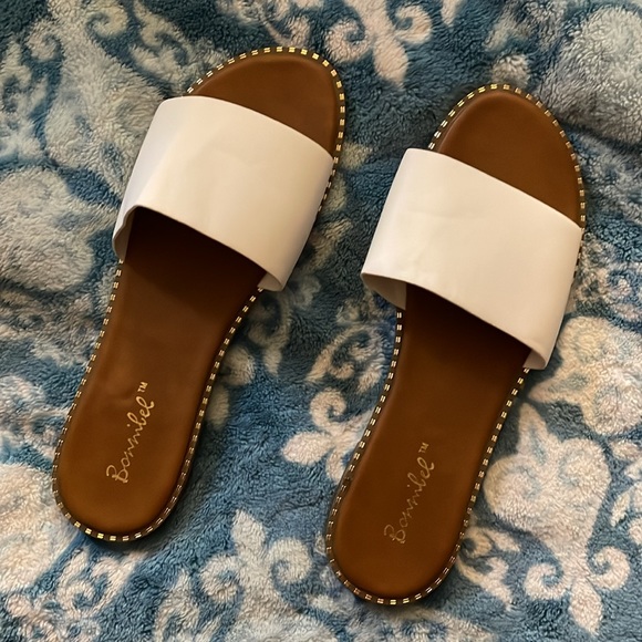 Never worn flat sandals White with gold shiny trim