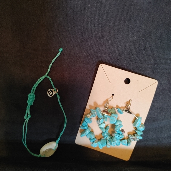 Blue Summer jewerly set. Rocklike earrings with matching shells adjustable bracelet.