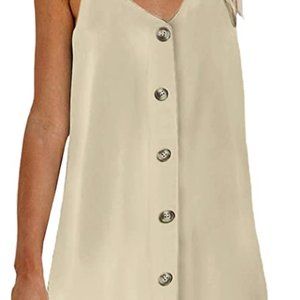 Features:Adjustable Spaghetti Strap,Sexy V Neck Sleeveless, Button Front Decoration, Casual Loose Fit Swing Tank Dress