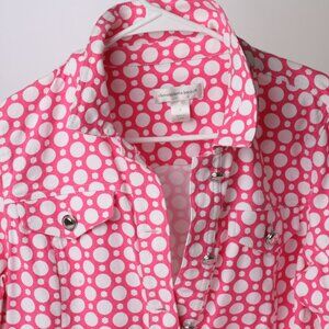 Summer Spring Jacket Vibrant Pink with White Dots Christopher & Banks Like New
