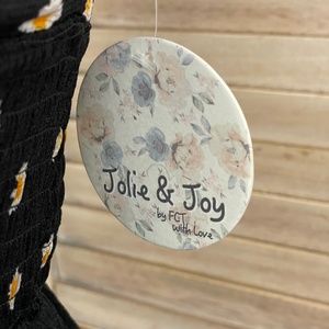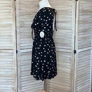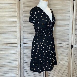 Jolie and Joy Mini Summer Spring Dress Black with Daisy Print Open Back Ties at neck