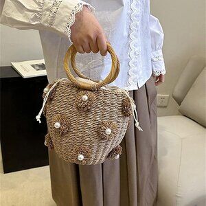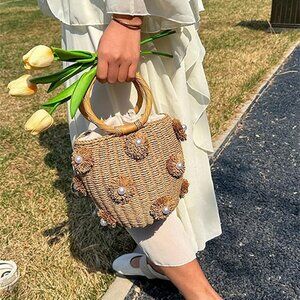 Features: Woven from artisan-crafted straw with a soft lining, lightweight yet sturdy, with a dainty design that’s both chic and practical. The embellished details add a lovely touch of whimsy and femininity.