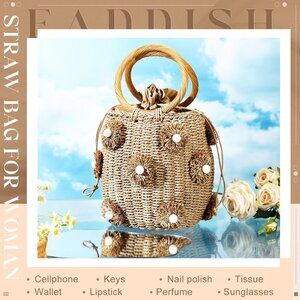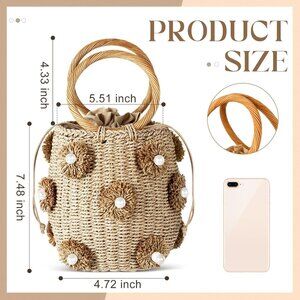 Step into summer in style with this beautiful Summer Straw Tote Bag! Featuring charming pearl flower details and a vibrant brown hue, this rattan handbag is perfect for adding a chic touch to any outfit. Its trendy bucket shape and sturdy handles make it super versatile for shopping, beach days, dates, or parties. The spacious interior comfortably fits your essentials like your phone, keys, and lipstick, with an additional inner pocket for extra organization. Made from durable straw with a polyester lining, it's designed to last, resisting wear and fading. Just a heads up—a few pearls might fall off during transit, but that just adds to its handcrafted charm! Perfect for casual outings or dressing up, this tote will be your go-to for sunny days and fun events. Ships quickly from a smoke-free, pet-free home. Reasonable offers and bundle discounts welcome.