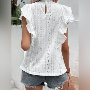 Introducing our collection of Summer Styles White Blouses for Women, featuring the Eyelet Butterfly Short Butterfly Sleeve Round Neck Blouse. Elevate your summer wardrobe with this chic and preppy blouse, perfect for achieving the ultimate look of style and comfort.