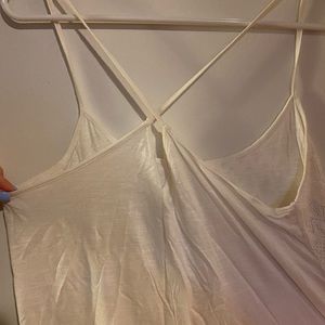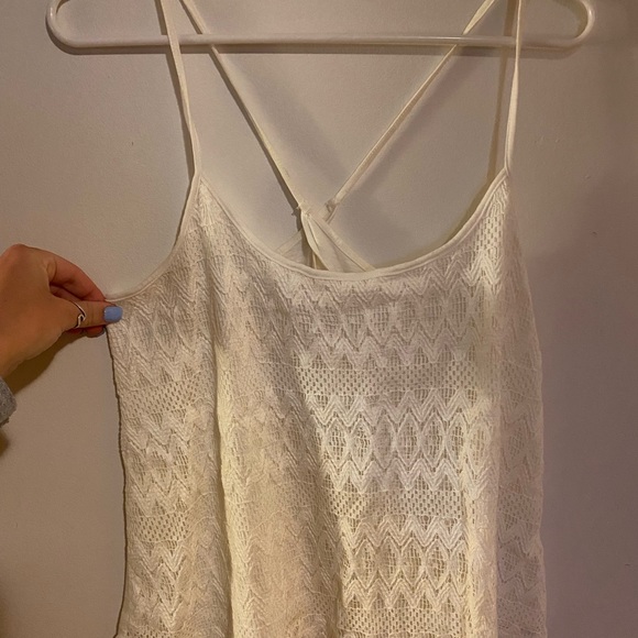 Cute summer white tank top. Straps cross in the back. Lace in the front.