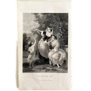 Summer Time Engraving 1859 Victorian Family Playing In Field Art DWY5F