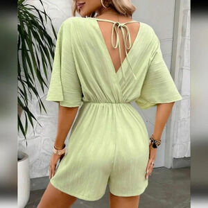 Summer Vacation Casual Solid Color Pleated Batwing Sleeve Jumpsuit With Belt
