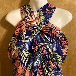 Pre-Loved 😍Condition, has some wear & tear, plus stains as pictured above. Tropical 🌴 forest 🌳, straps crisscross, removable bra pads, comfortable, eye-catching; unique colors, great 👍 for Hawaii, Beach 🏝️, Seaside paradise vacations.