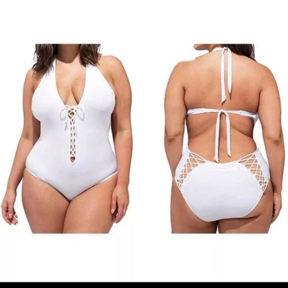 Summer Women Plus Size Deep V Straps One-piece Sling Hanging Neck Bikini Swimwear Bathing Suits Bodysuit Monokini Swimsuit #57