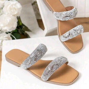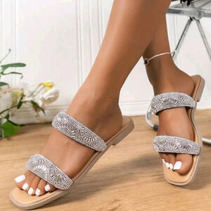 Summer Women's Fashionable and Versatile Square Head Adhesive Slippers