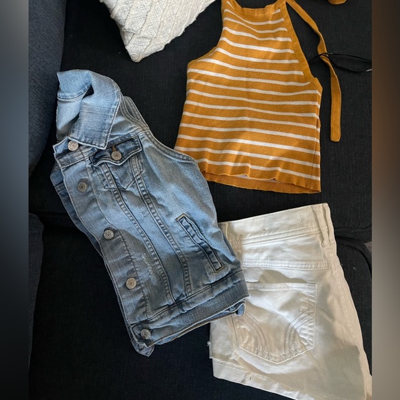 Vest Jean jacket - Hollister short shorts - 3 sweater halter top - NWOT - S