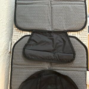 Summer car seat car protection. Black wipe off material. Non slip. Has bag for kids toys or snacks.