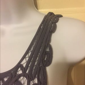 Super comfy Mini dress, worn once. Wide straps, pretty lace/crochet detailing on the neck and straps in the front. Bow tie in the back. Perfect for summer parties, graduations, dances, etc.
