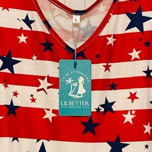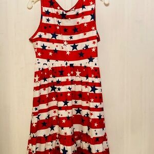 36" long from shoulder to hem, midi dress, patriotic and very Americana
