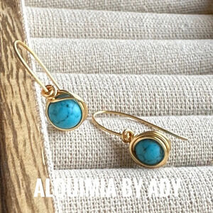 Summer farewell turquoise gold drops bubbles dangle statement earrings