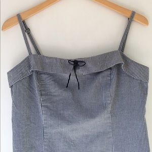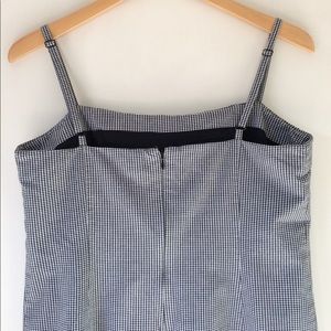 Cute summery gingham dress in black and white. Lined with black acetate fabric. Rip in the lining near hem. Not visible on outside. Would be cute with sandals and has casual vibe.