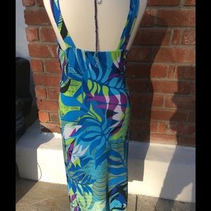Colorful sleeveless strap dress. Vibrant colors in lime green Tourquoise purple and black. Wrap over front top. New size M