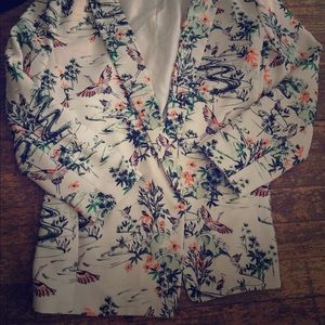 Beautiful summer patterned blazer. Blazer falls at hip level, perfect for going out or summer casual work attire. Button in front to close it.