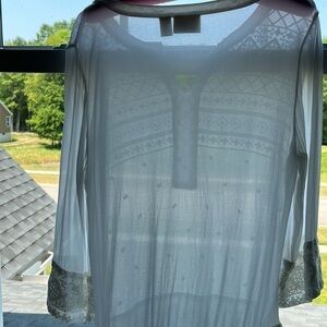 Summer sheer 3/4 sleeve Chicos Size 2 Embroidery overlay Vneck summer top