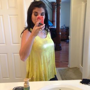 Summers around the corner get your pretty yellow golden tan on with this pretty yellow gold tank top! would look very nice at the beach tight at the top loose on the bottom