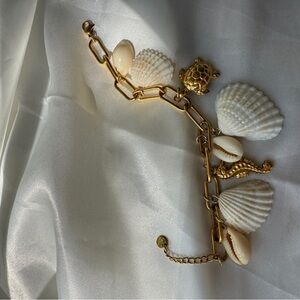 Summer trend adjustable Gold and White Shell Charm Bracelet