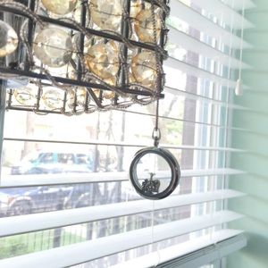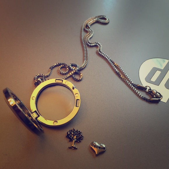 So this is one of my own creations. Again I make jewelry. Here is a sterling silver glass locket. The chain is 18" long and it's stainless steal. The charms and glass locket itself is sterling silver. I do accept offers as well.