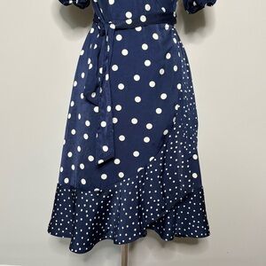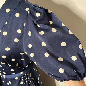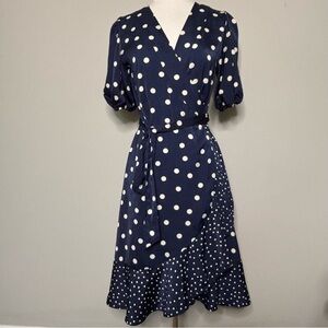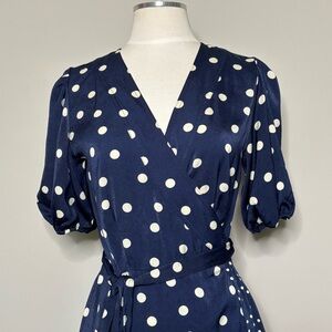 SummerSalt Navy & White Polka Dot Silky Luxe Puff Sleeve Wrap Dress, size 8