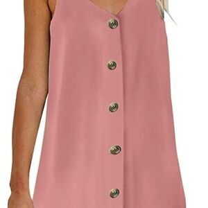 Features:Adjustable Spaghetti Strap,Sexy V Neck Sleeveless, Button Front Decoration, Casual Loose Fit Swing Tank Dress