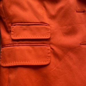 Single breasted, center front buttons, and front pockets (two on the left side). Lined.