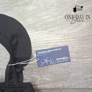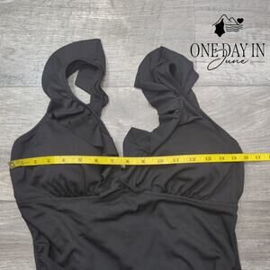 Summermae Maternity Ruffle Shoulder Ribbed One Piece Swimsuit Size L Behold this most charming black one-piece, designed with the greatest consideration for the expecting lady's comfort and modesty. The delightful ruffle shoulders lend an air of gentle femininity, while the ribbed construction promises both elegance and ease during those warm summer months. A most sensible addition to any discerning woman's wardrobe, crafted from the finest polyester and spandex blend. Color: Black Condition: New With Tags Brand: Summermae Size: L Material: 82%Polyester/18%Spandex Tags: #SummermaeSwimsuits #MaternityFashion #BlackSwimwear 19622